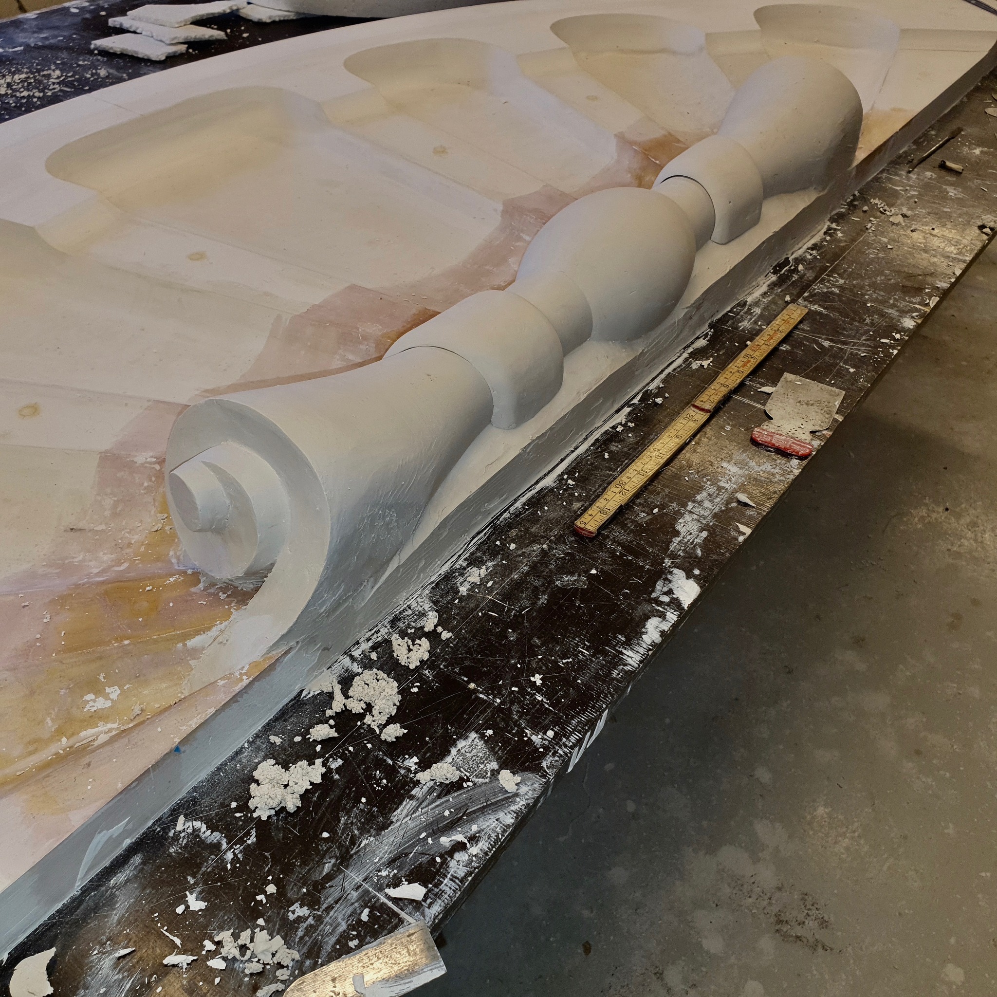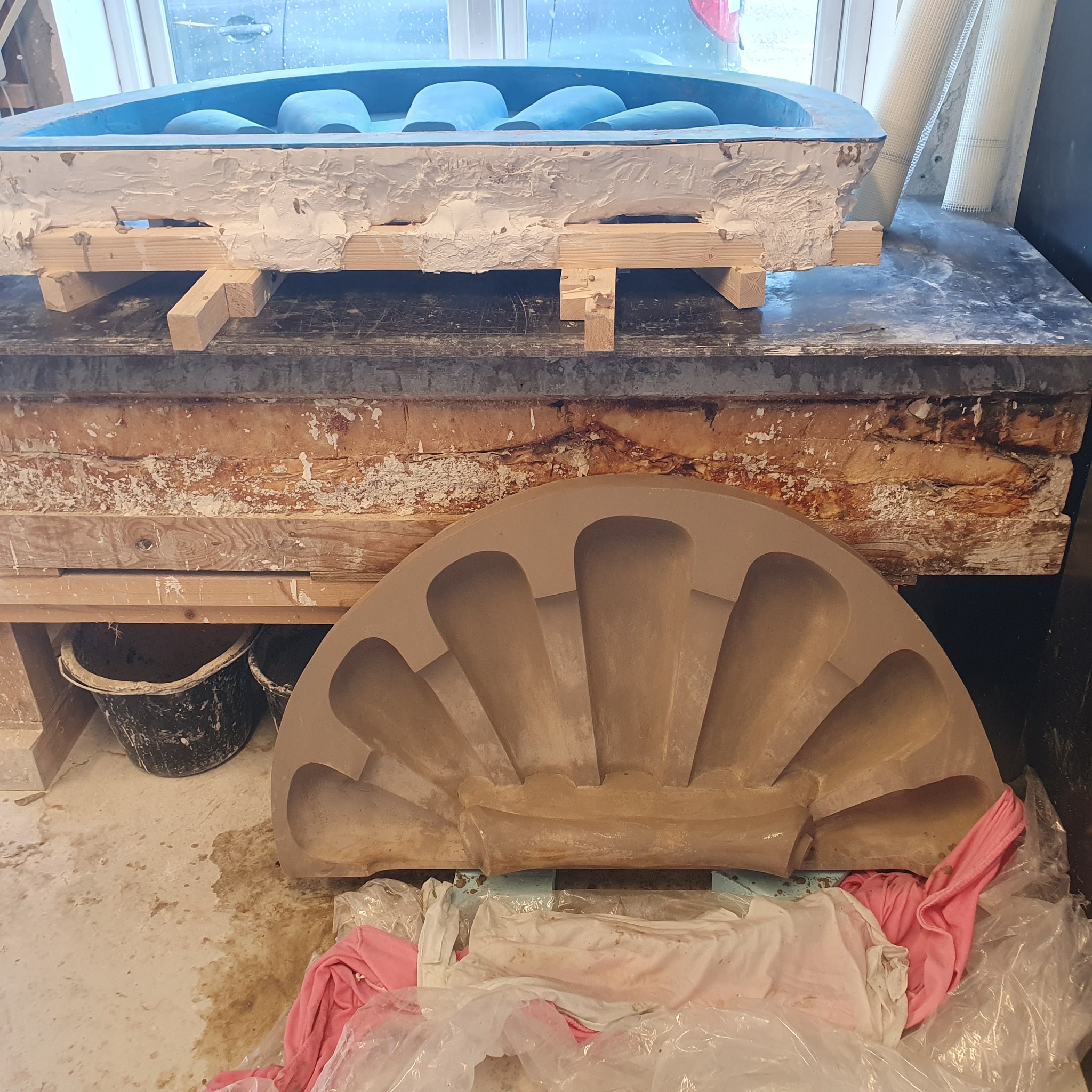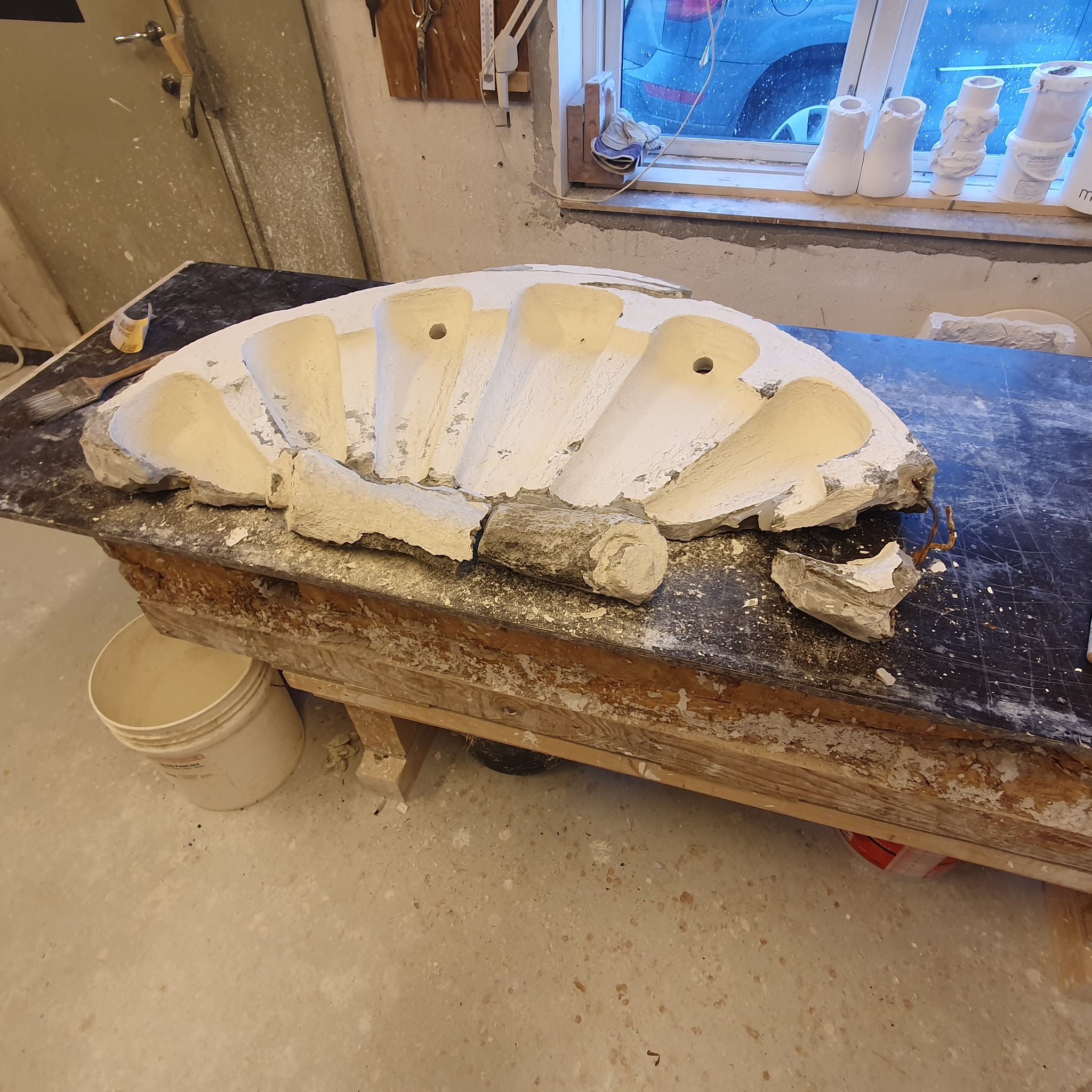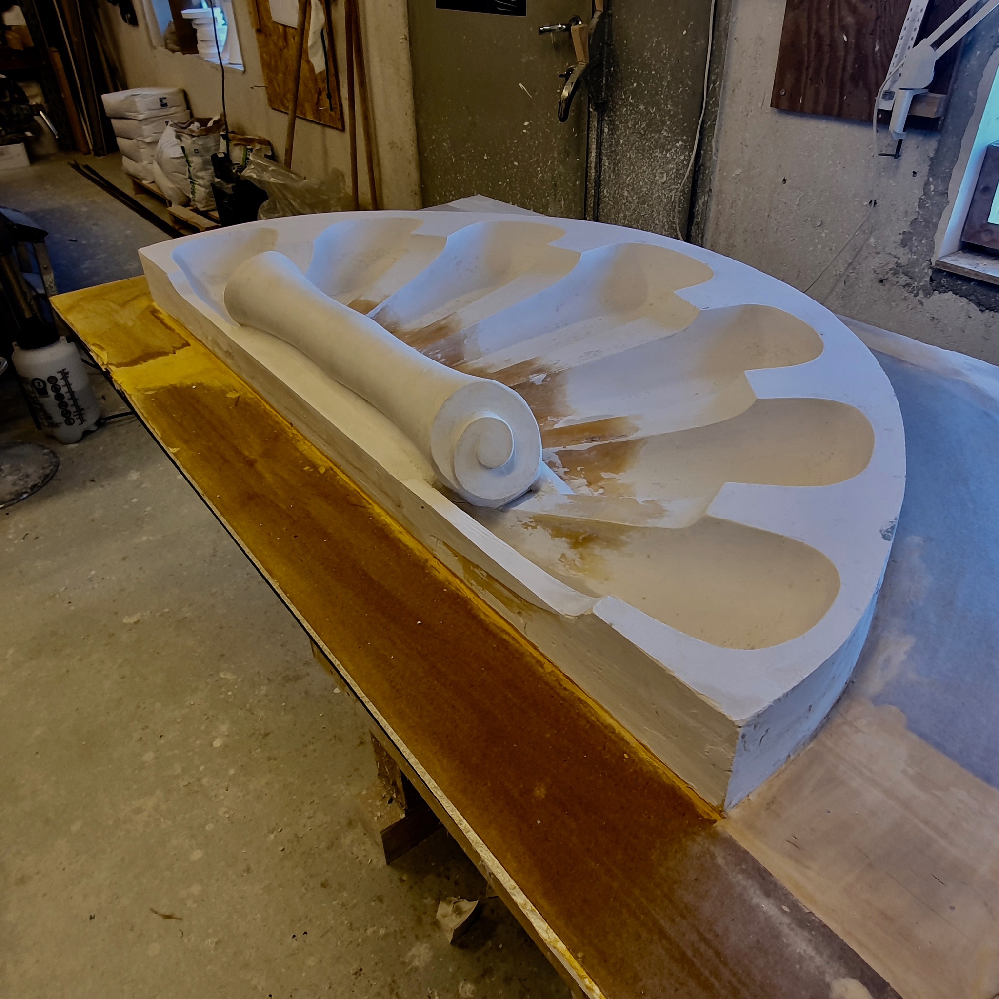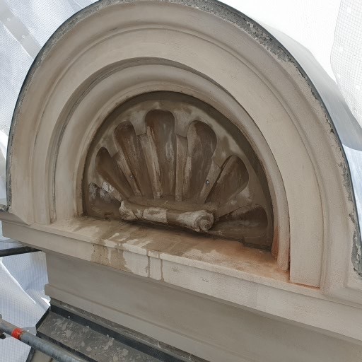 II oppdrag for SH Bygg/Veidekke AS tilbakeførte vi 2023 et stort skjell 2x. Modellert etter gamle bilder og med 1 mindre skjell som stil referanse.